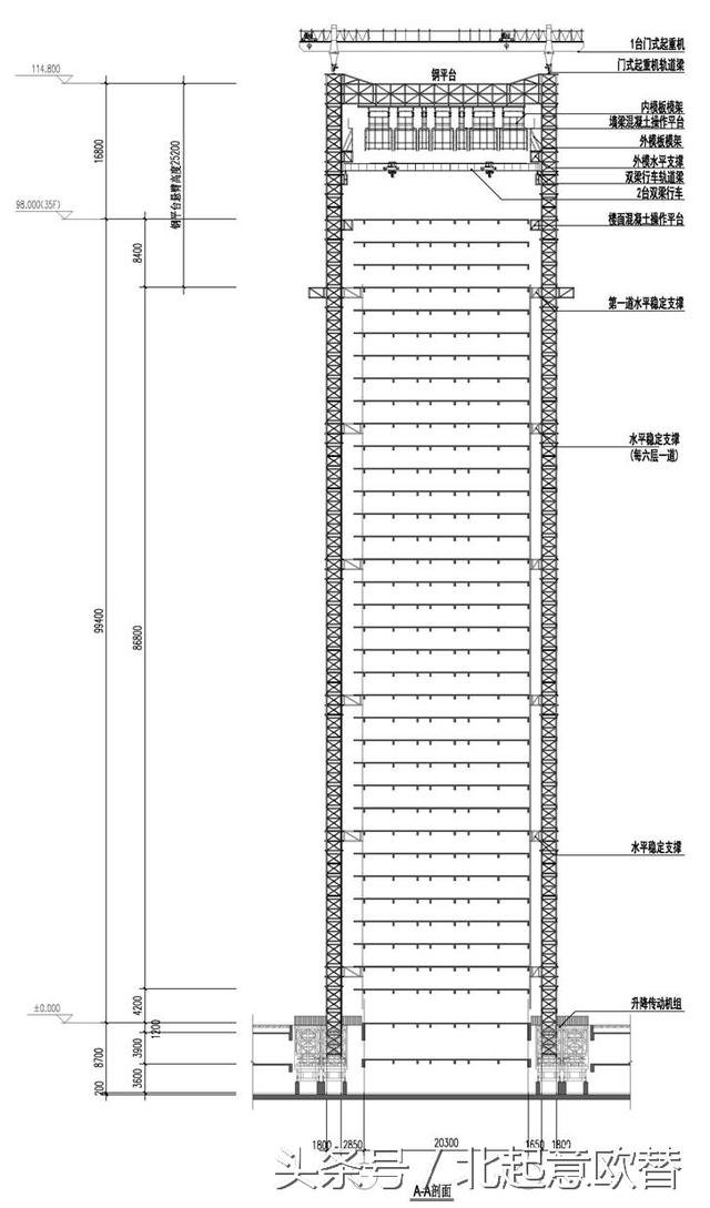 由門式起重機、雙梁橋式起重機、施工電梯、升降傳動機組、格構式桁架鋼管升降柱與7道鋼構操作平臺,高度集成為一臺大型、通用、組合式機械裝備。模擬一座移動造樓工廠,在一座城市或一個地區流轉覆蓋高層與超高層住宅各類不同形體的標準化產品,以標準化動作、標準化節奏進行現場、機械化現澆混凝土為基礎的智能化工業建造技術。