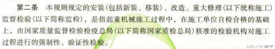 本法規(guī)第一頁第二條注明起重設備是在自檢合格的基礎上,再由特種設備檢驗機構(gòu)進行強制性驗收檢驗。