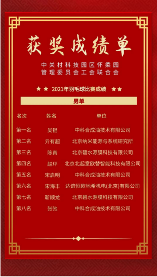 公司副總經(jīng)理趙玶榮獲2021年羽毛球比賽第四名!