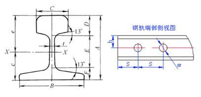 | 鋼軌型號(kg/m) | 截面尺寸(mm) | 端部尺寸(mm) | 截面面積(cm^2) | 理論重量(kg/m) | 重心距離c(cm) | 重心距離e(cm) | 慣性矩 | 截面系數(shù) | 回轉(zhuǎn)半徑 | |||||||||||