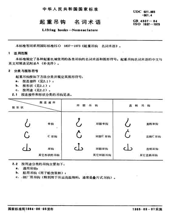 GB/T 4307-1984 起重吊鉤 名詞術語